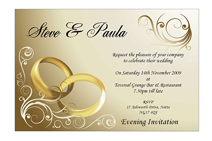 AIM produces stylish invitations in many popular sizes. You have a choice to print on one side (4/0) or both sides (4/4), depending on your design. You can order from 100 to as much as 10,000 pieces.